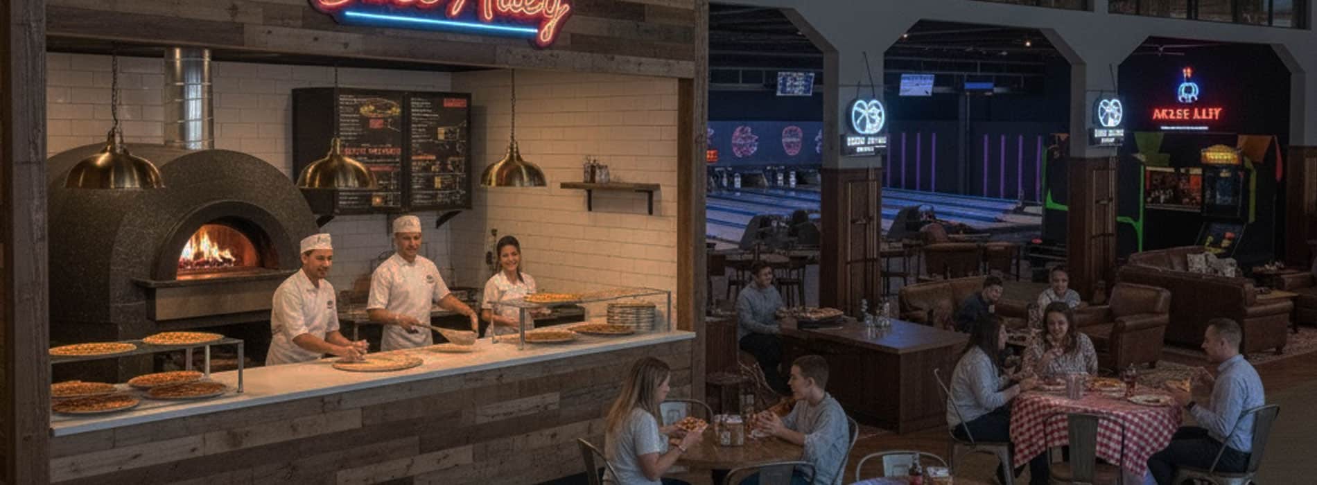 Notre espace bar-restaurant vous accueille dans une ambiance chaleureuse et moderne. Vous pouvez savourer nos pizzas tout en profitant de l’atmosphère unique de notre établissement, que ce soit en regardant les scores sur nos écrans ou en vous détendant dans notre espace lounge. Nos formules permettent d’associer le plaisir du grignotage à celui du jeu. Nos pizzas s’intègrent parfaitement dans l’esprit fun du Bowling de l’Etoile, transformant chaque petite faim en un moment de partage simple et rapide.